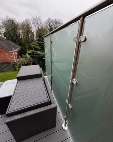Another important consideration was the property’s proximity to a neighbor’s garden. To adhere to building regulations while maintaining privacy, we opted for opaque glass at a height of 1800mm. This not only ensures that the neighbors have their privacy but also enhances the overall aesthetic of the balustrade. Our design solution effectively combines functionality with pleasing visuals, creating a barrier that is both inviting and secure.