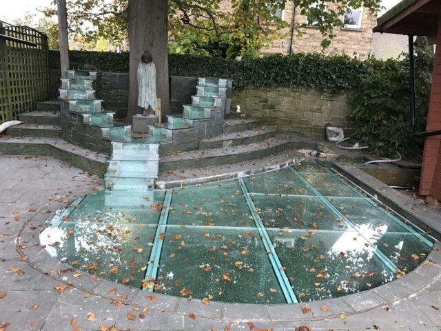 For our client, we designed a custom cover that blends safety and functionality. This cover is made using high-quality 33.5mm thickness toughened & laminated safety glass that can withstand the weight of individuals who may inadvertently step on it. We ensured that the glass surface was robust enough to prevent accidents while still allowing the beauty of the water feature to shine through. Thus, our solution not only keeps the leaves at bay but also transforms the pond into a safe space for everyone to enjoy.